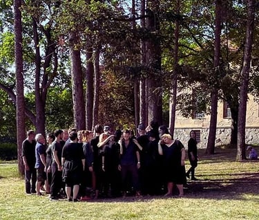 The workshop is primarily shaped for spending meaningful time together, to facilitate interpersonal communication and establish an atmosphere of unity. Therefore, the artistic approach adapts in response to the community – according to their needs and interests; and may incorporate additional mediums — such as photography, puppetry, food-based activities, writing, sound recording, video documentation, etc. Listening to the collaborative and process-driven nature of community-based work.